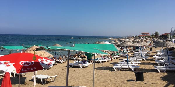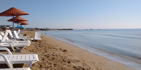 Flat sandy beach very close to the ruins of Salamis. Restaurant, beach cafe, showers, sun loungers and parasols. Also next to the beach you will find a public picnic area.